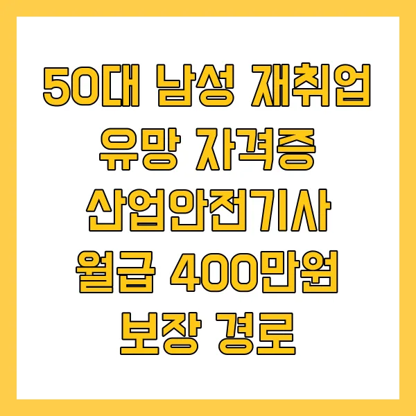 인생 2막, 안정적인 수입이 절실한가요? 50대 남성 재취업 유망 자격증, 산업안전기사로 월급 400만원 보장 경로 를 확인하세요. 중대재해처벌법 강화로 수요가 폭발했습니다. 지금 바로 확인하셔서 받을 수 있는 혜택 꼭!!! 챙기세요.